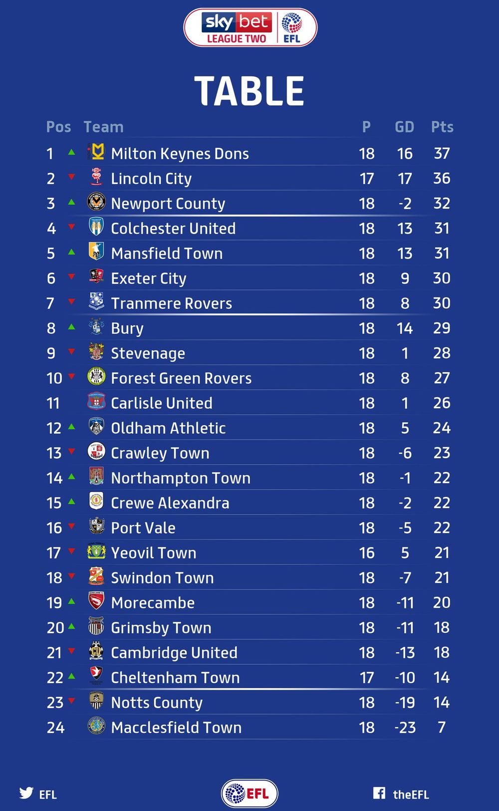 | 17 | Оксфорд Юнайтед | 42 | -17 | 48 |