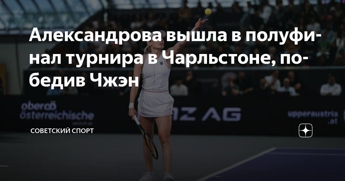 Российская теннисистка Екатерина Александрова, посеянная под номером 9, уверенно вышла в полуфинал турнира Credit One Charleston Open в 2025 году, одержав победу над третьей сеяной Чжэн Циньвэнь. Матч завершился со счетом 6-1, 6-4.