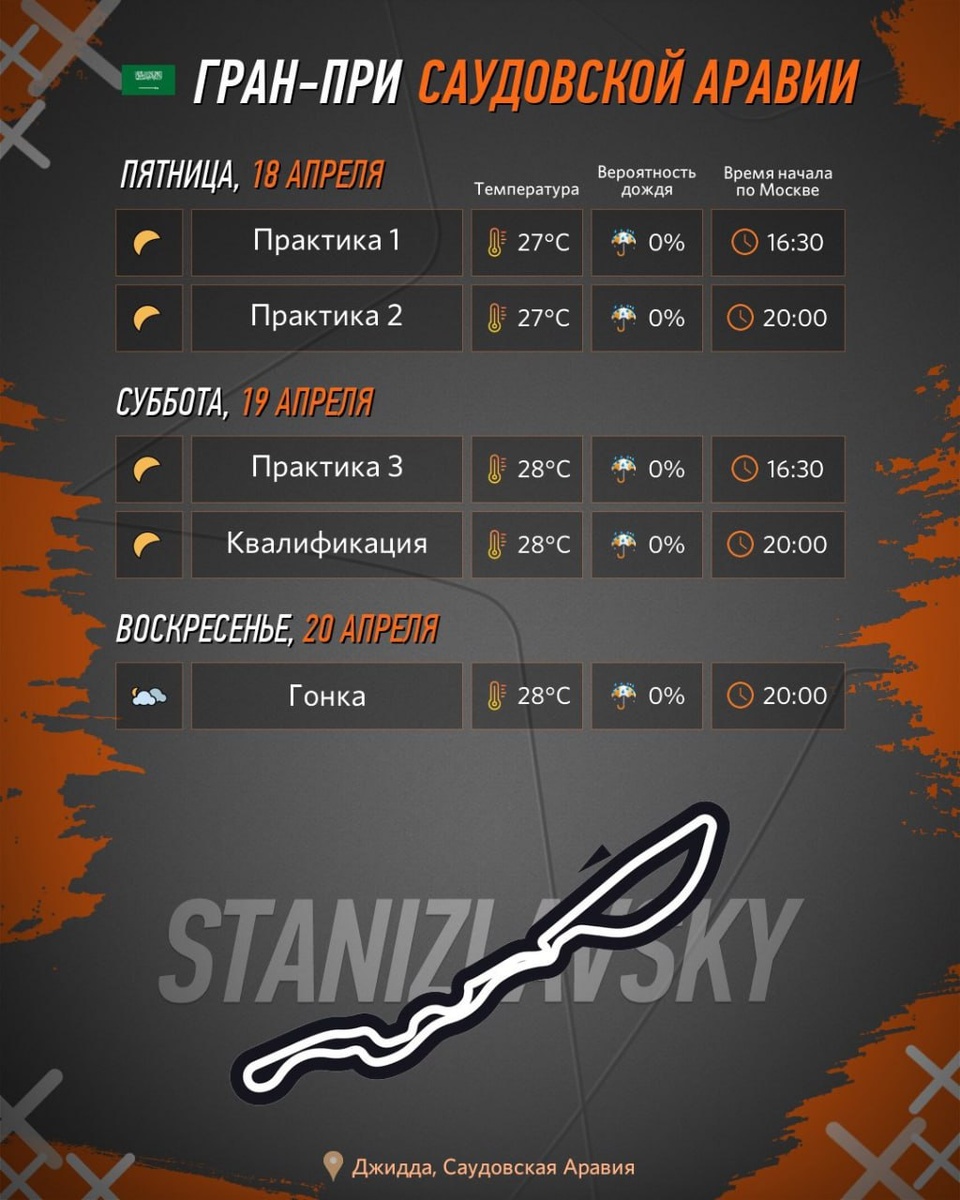 - 18:00: ГРАН-ПРИ САУДОВСКОЙ АРАВИИ*