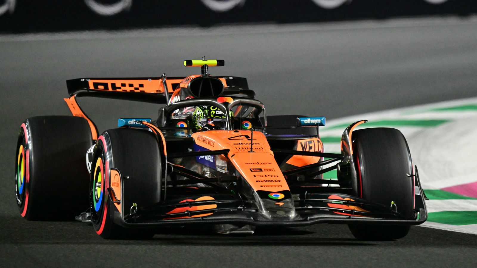 Пиастри, победивший в Бахрейне и приблизившийся к Норрису в верхней части турнирной таблицы на три очка, избежал раннего испуга, задев одну из многочисленных стен трассы Джидда Корниш, и занял четвертое место после Шарля Леклера из Ferrari.