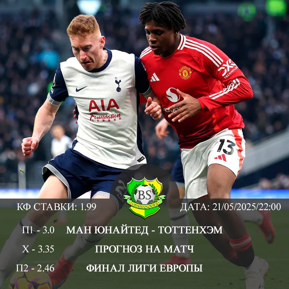 В решающем матче Лиги Европы УЕФА сезона 2024/25 встретятся два представителя английской Премьер-лиги — Тоттенхэм и Манчестер Юнайтед. Для обеих команд этот финал станет последним шансом обеспечить себе место в Лиге чемпионов на следующий сезон. Поединок пройдет на стадионе Сан Мамес в Бильбао.
